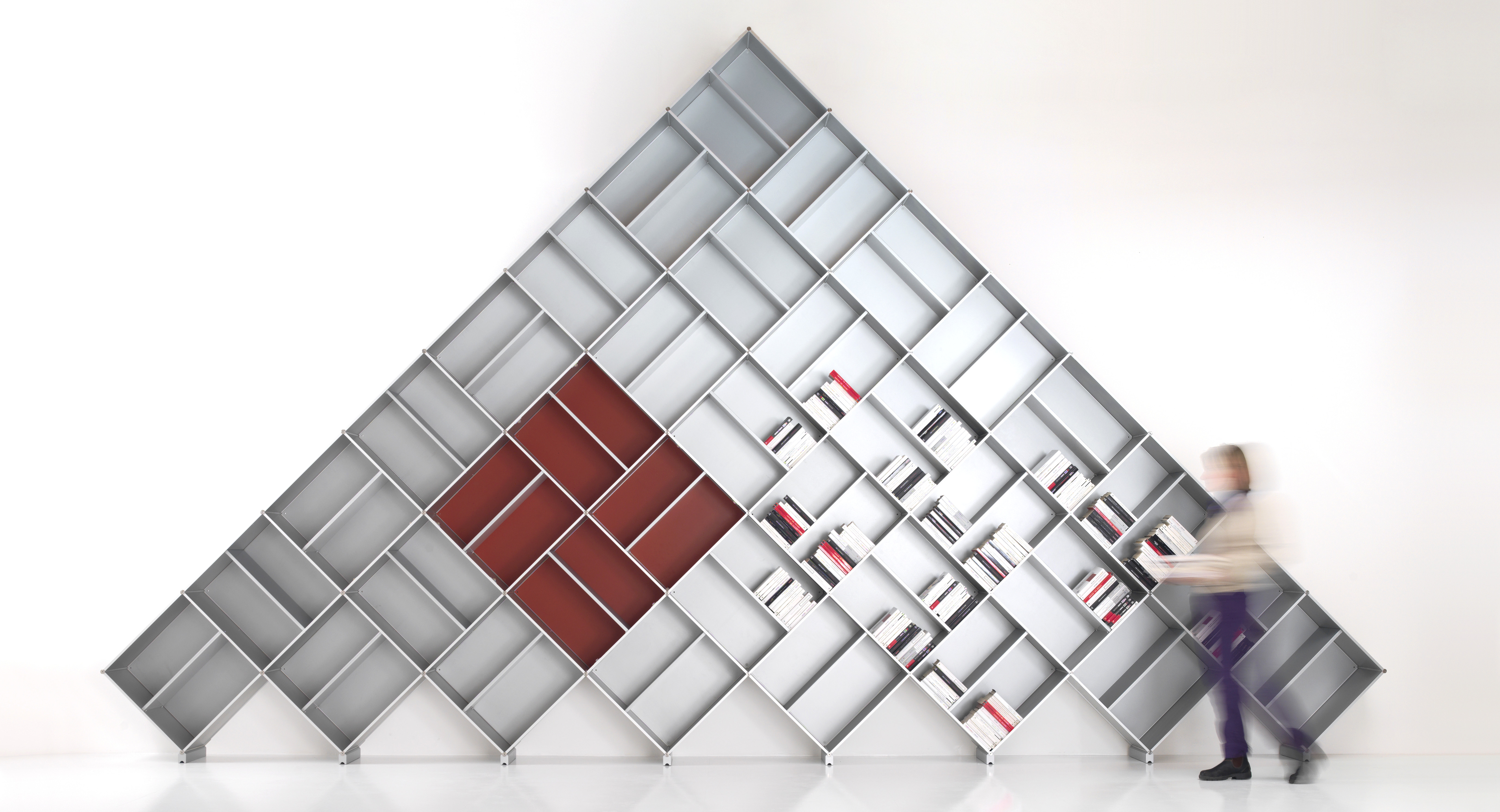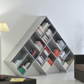 La vera libreria componibile in estruso di alluminio nella singolare ed esclusiva forma a piramide: un modo unico per personalizzare il tuo spazio.
