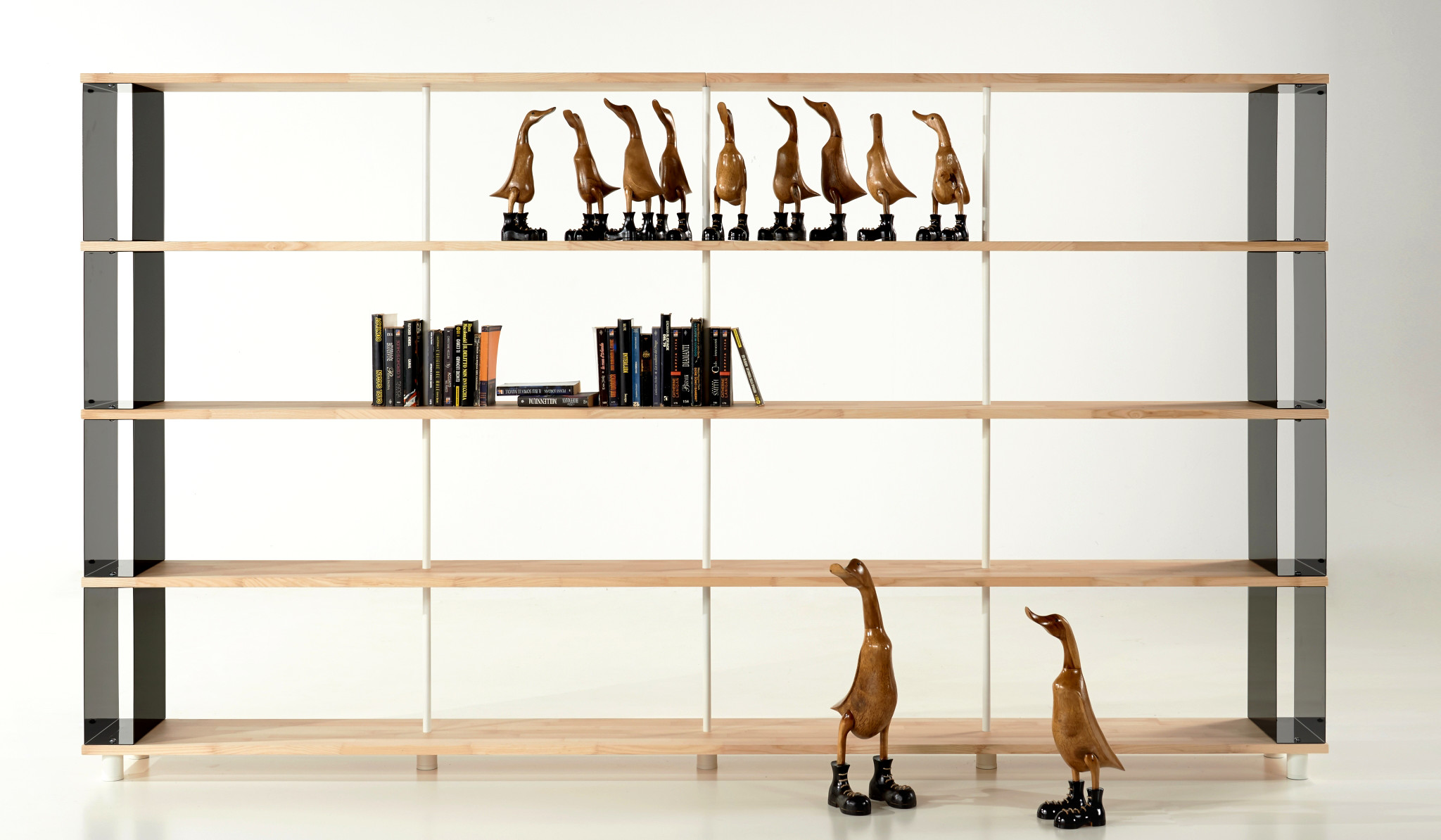La libreria che diventa mobile contemporaneo per la casa o per l’ufficio arricchendosi con i ripiani in caldo legno massello di Faggio. La soluzione per chi vuole distinguersi anche nella semplicità.